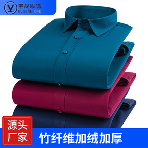 秋冬款竹纤维加厚长袖衬衣休闲商务弹力修身中老年保暖加绒衬衫男