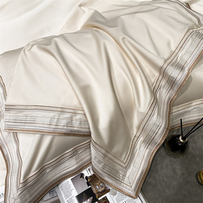厂家批发120支新疆长绒棉四件套母婴A类纯色纯棉夏全棉刺绣床笠款
