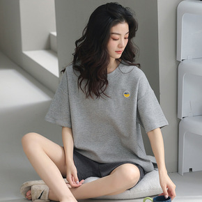 睡衣女夏季纯棉新款华夫格短袖短裤全棉可外穿高档家居服套装批发