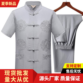 新款2022春季中国风男装刺绣牛奶丝商务绅士中山装唐装民族服装