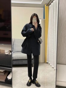 格子毛呢大衣女中长款韩版宽松2021冬季新款学生过膝chic呢子外套