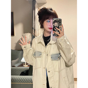 2022新款春季百搭宽松白色牛仔外套女小个子春秋拼接夹克上衣ins