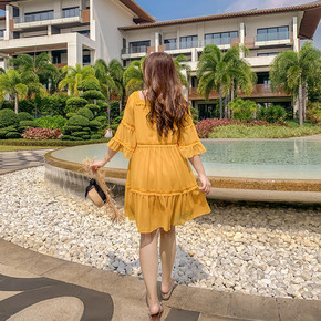 沙滩裙2022新款胖妹妹海边度假显瘦裙子超仙200斤大码胖mm连衣裙