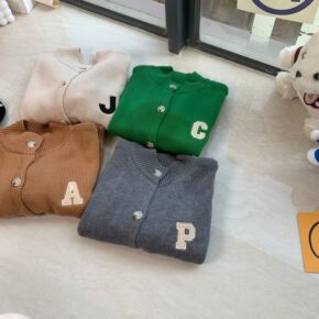 儿童毛衣2022年新款男女童纯色字母毛线开衫宝宝毛衣外套跨境专供