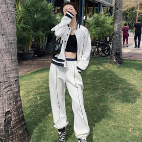 2021春季新款T恤女修身长袖内搭打底衫黑色运动洋气紧身连帽上衣