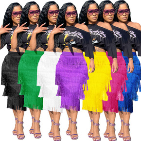 欧美大码女装2022夏季新款印花短袖t恤女流苏裙时尚半身裙两件套