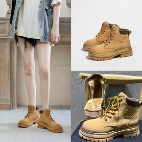 大黄靴女款2022冬季新款马丁靴真皮女生厚底黄色短靴温州正品女鞋