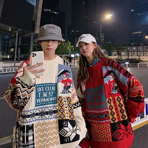 锦开 秋冬情侣外穿欧美复古圣诞毛衣女装外套针织衫卡通小熊上衣