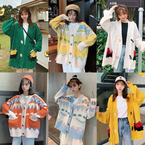 2022韩版慵懒风外套大码宽松中长款针织开衫毛衣库存杂款尾货批发