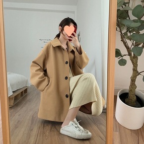格子毛呢大衣女中长款韩版宽松2021冬季新款学生过膝chic呢子外套
