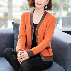 早秋新款外套女开衫上衣2022春秋季拼色毛衣二八月针织衫披肩外搭