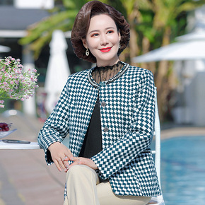 妈妈洋气短款西装外套春秋装小香风气质外套中老年圆领薄款上衣