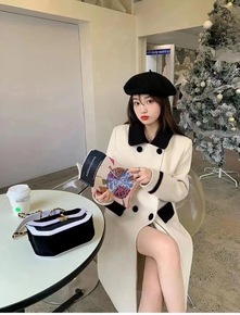 WANYI 新款赫本风双面羊绒呢子大衣长款黑色毛呢外套女秋冬 8810