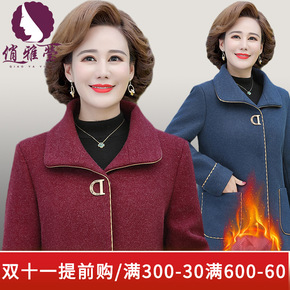 俏雅莹妈妈装秋冬新品人造毛呢外套夹棉保暖翻领纯色中老年女装