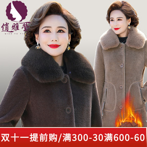 俏雅莹妈妈装冬大衣纯色中长款夹棉保暖口袋中老年女装仿水貂绒