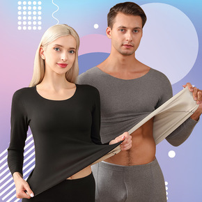 双面德绒保暖内衣 AB面无痕加绒磨毛保暖套装 男女秋衣秋裤套装