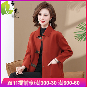 妈妈春秋装短款呢子外套中年女洋气双面呢大衣中老年时尚大码上衣