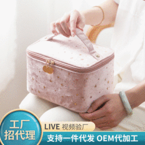 Amazon new women's Nordic flannelette cosmetic bag travel hand wash bag velvet cosmetic storage bag