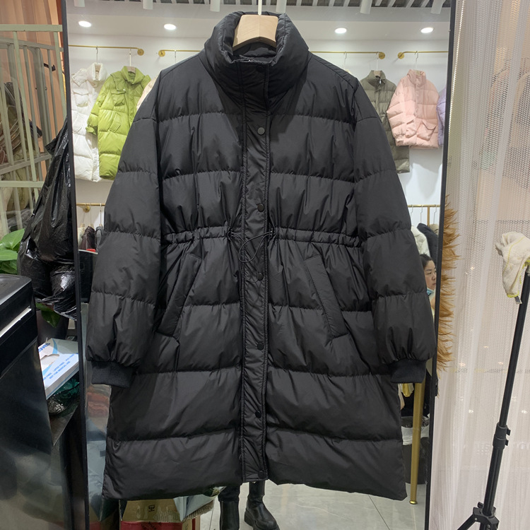 East gate medium length down jacket women's stand collar drawstring waist closing 2022 winter loose bread jacket version a jacket