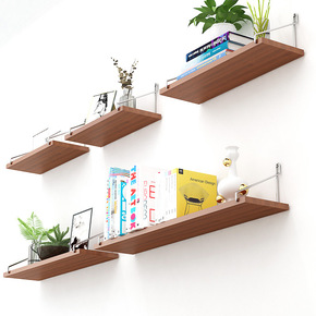 北欧墙上置物架实木壁挂一字板客厅卧室墙壁装饰创意现...