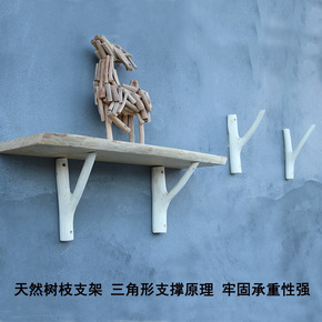 实木树枝支架 三脚架 墙壁一字隔板支 置物托架墙壁...