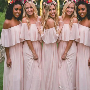 出租粉色伴娘服2021夏季新款长袖一字简约大气显瘦...