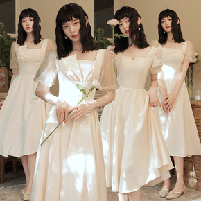 缎面小众伴娘服女2022新款秋季姐妹团礼服连衣裙仙...