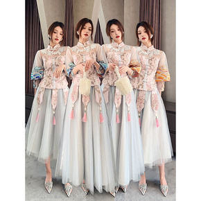 伴娘服女2021秋冬季新款敬酒宴会订婚晚会吊带长裙...