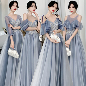 伴娘服2022新款夏季仙气质伴娘团礼服姐妹裙女灰色...
