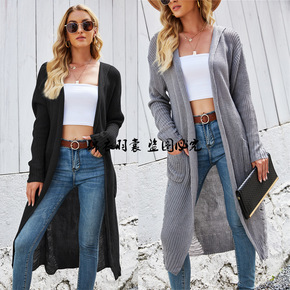 2021秋冬新款亚马逊速卖通大码女长款针织衫破洞开...