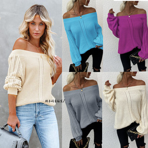 2021冬季新款跨境欧美外贸毛衣亚马逊花边一字领性...