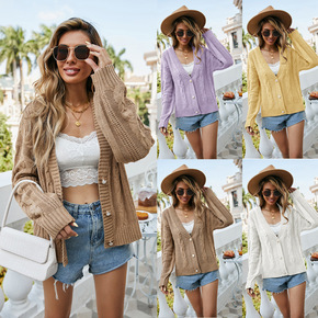 2021秋冬新款欧美跨境外贸女装大码开衫毛衣亚马逊...