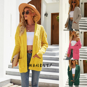 2021秋冬新款欧美外贸女式麻花开衫亚马逊秋冬毛纽...