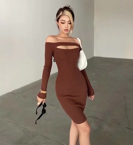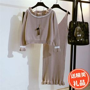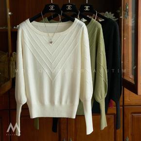 2021秋冬新款一字领纯色个性镂空时尚针织衫大码套...
