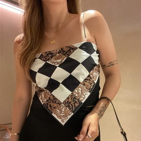 欧美性感格子百搭格子复古巴洛克风弹力一字领透气方巾...