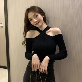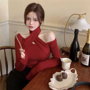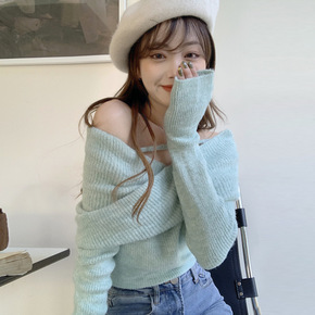 cheeseY 性感露肩毛衣女秋冬新款洋气吊带针织...