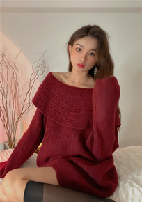 诠释美 NEW OPEN冬季名媛一字肩黑色裙收腰包...