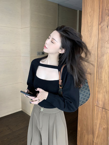 网红秋冬新款复古小众设计感韩版挂脖针织衫内搭显瘦打...