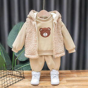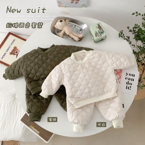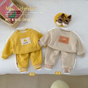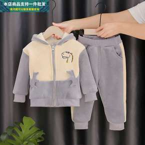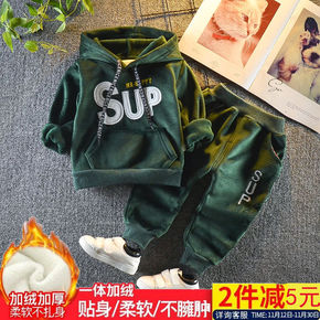 男宝宝秋冬装加绒加厚套装1-2-3-45岁女孩子金...