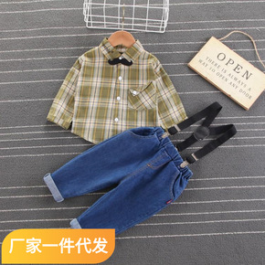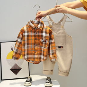 【10件包邮】夏黄色不连帽春季裤小童套装单排扣棉格...