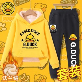 小黄鸭儿童加绒卫衣套装外穿加厚男童宝宝外套冬装中大...