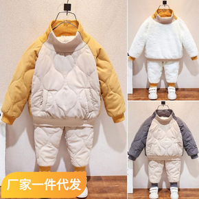 儿童加绒套装宝宝秋冬装2021新款男女童棉服洋气加...