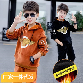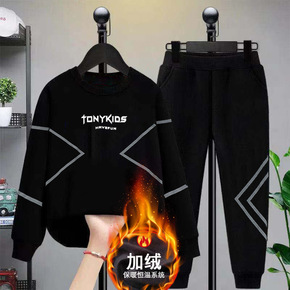 男童套装加绒2021秋冬装新款洋气宝宝帅儿童男孩加...