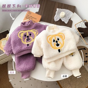 2022童装冬装新 男女童保暖套装 毛绒加厚带帽动...