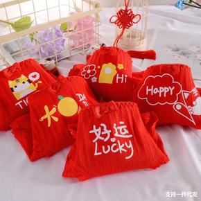 女童大红色内裤纯棉中大童三角裤头女孩本命年儿童短裤...