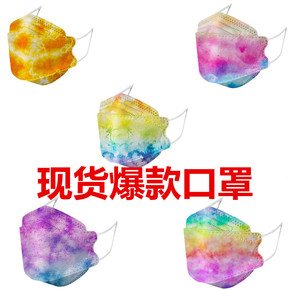 跨境热卖新款儿童男女防护三层扎染一次性印花口罩渐变...