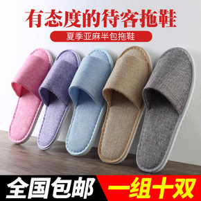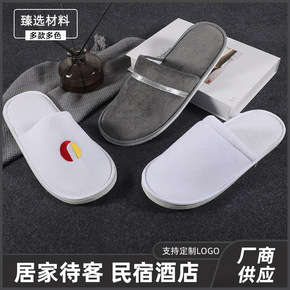 酒店客房一次性拖鞋 民宿宾馆棉麻拖鞋 居家备用双色...