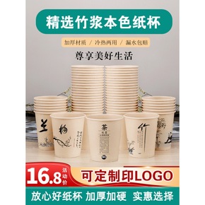 纸杯批发一次性杯子做印LOGO本色茶水杯家用办公加...