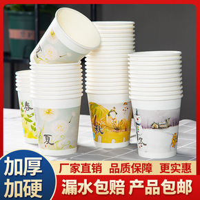 一次性纸杯100只一次性杯子纸杯加厚本色批发超市家...