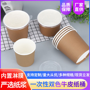 一次性牛皮纸桶双色外卖打包粥桶圆形汤桶纸桶汤杯酸辣...